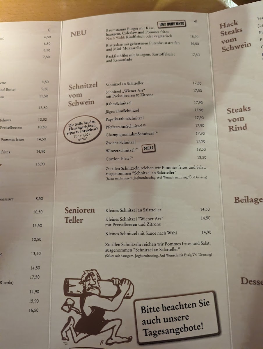 Welcome to Baumstammhaus, a delightful German restaurant nestled in Walluf, Germany. Known for its hearty portions and rustic ambiance, this eatery is a haven for lovers of traditional German cuisine. The standout dish here is undoubtedly the schnitzel, celebrated by patrons for its exceptional flavor and generous size. Many diners recommend sharing meals, as the portions are truly enormous.